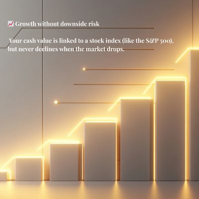 Your cash value is linked to a stock index (like the S&P 500), but never declines when the market drops.